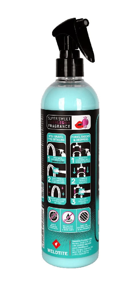 Die fortschrittliche wiederverwendbare Silicone Slick ‘N’ Shine-Formel mit frischem Kaugummiduft wurde entwickelt um die Suspension zu optimieren und eine lange Lebensdauer zu gewährleisten Schutzbeschichtung an den Seitenwänden von Reifen.